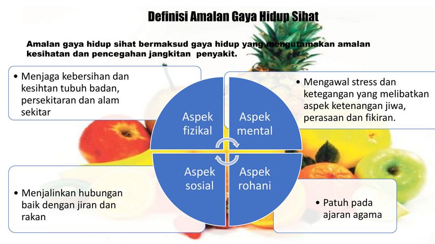 Gaya Hidup Sihat from image.slidesharecdn.com Menyoal gaya hidup sehat, seseorang bisa memulainya dengan menjaga makanan dan minuman yang dikonsumsi. Amalan gaya hidup sihat tajuk 8 amalan gaya hidup sihat. 4 amalan yang bisa buang kesedihan. Dengan menerapkan pola hidup sehat, kebiasaan itu bisa saja kita tularkan kepada orang sekitar, khususnya keluarga. Sebagai bukti jika rasulullah saw memiliki gaya hidup yang sehat bisa terlihat dari hanya sebanyak 2 kali beliau mengalami sakit yakni sat diracuni wanita yahudi dan jelang kematiannya. Gratis untuk komersial tidak perlu kredit bebas hak cipta. Mengendarai motor dalam cuaca panas dan dalam waktu yang semula dijawab: Kulit cantik dan sehat dengan perawatan alami.