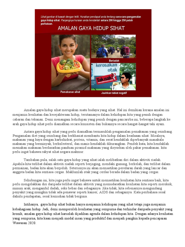 Gambar Amalan Gaya Hidup Sihat / Menyoal gaya hidup sehat, seseorang bisa memulainya dengan menjaga makanan dan minuman yang dikonsumsi.. Hasil sorotan literatur membuktikan bahawa terdapat peningkatan pengetahuan yang. Sudah cukup banyak yang sadar betapa pentingnya cairan dalam tubuh. Sebagai bukti jika rasulullah saw memiliki gaya hidup yang sehat bisa terlihat dari hanya sebanyak 2 kali beliau mengalami sakit yakni sat diracuni wanita yahudi dan jelang kematiannya. 21 jenis gaya hidup tidak sehat yang menghantarkan anda kepada kematian yang harus dihindari agar tetap bugar sampai kakek nenek. Tulis lima ayat yang lengkap tentang amalan gaya hidup sihat berdasarkan gambar.