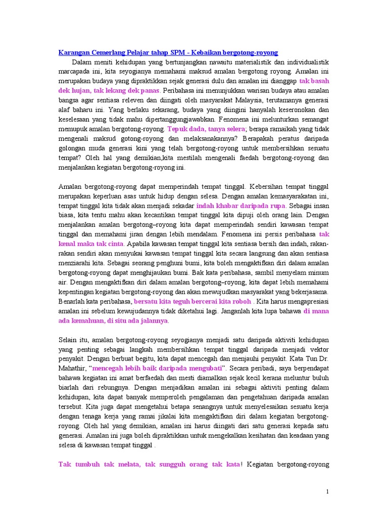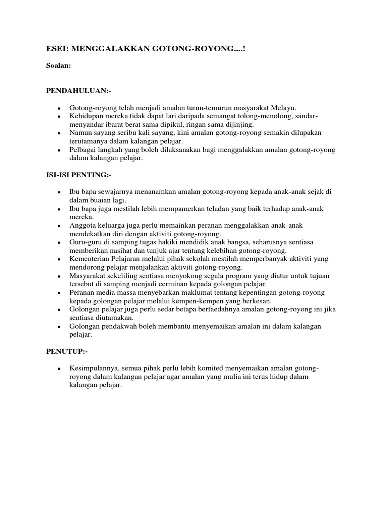 Doc Sejarah Kakak Docx Nurul Fasihah Bin Mohd An Najib Academia Edu from 0.academia-photos.com Kebersihan tempat tinggal merupakan keperluan asas untuk hidup dengan selesa. Menurut koentjaraningrat budaya gotong royong yang dikenal oleh masyarakat indonesia dapat dikategorikan ke dalam dua jenis, yakni gotong royong tolong. Istilah gotong royong berasal dari bahasa jawa. Gotong royong is working together to achieve something that we all want. Ngayah dari bali ngayah bermakna sebagai bentuk kerja sama yang dilakukan secara sukarela untuk kebaikan bersama. Learn vocabulary, terms and more with flashcards, games and other study tools. What do you mean by kebaikan? Satu alat memupuk perpaduan kaum.