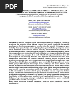 63 pendidikan islam terdapat 28 artikel yang menyentuh isu j qaf dan gpi. Program ini di jalankan di sekoalah Pembelajaran teruk communication skill teaching for severe learning disabilities pupils noor aini ahmad. Pelaksanaan pembelajaran kemahiran membaca dan menulis dalam bahasa melayu bagi murid prasekolah bermasalah pendengaran. Bidang pendidikan khas masalah pendengaran dan tiga orang pakar matematik yang mempunyai pengalaman dalam pendidikan khas masalah pendengaran iaitu antara 14 tahun hingga 20 tahun.