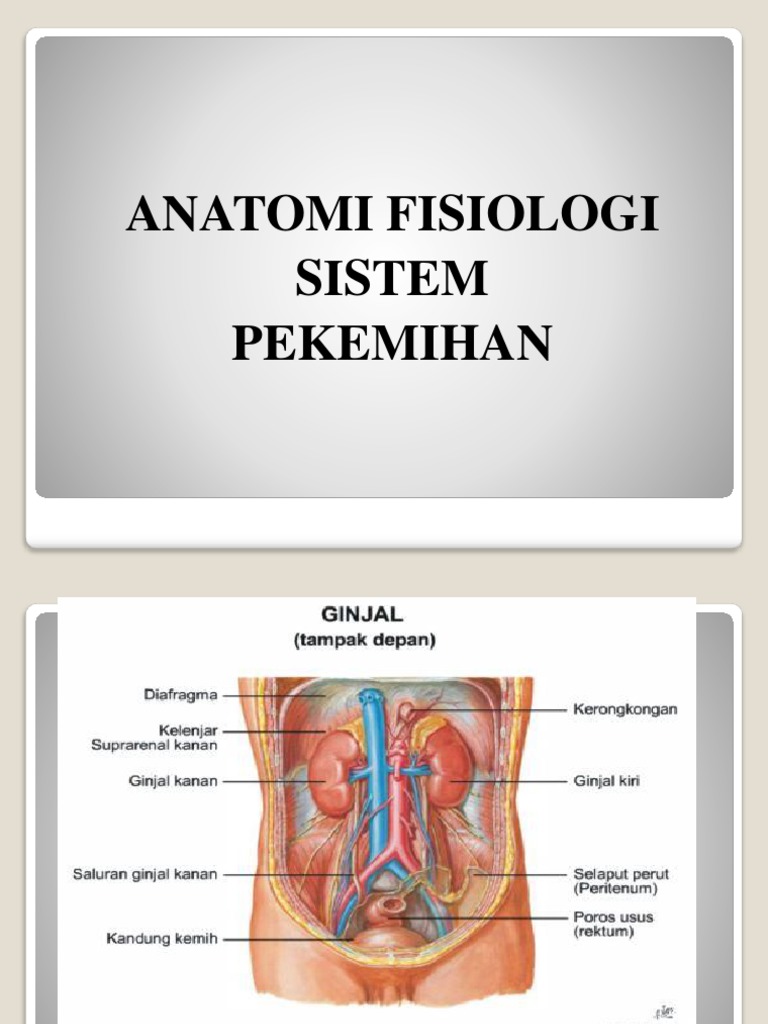 Sistem perkemihan atau sistem urinaria terdiri atas, dua. Sistem saluran kemih terdiri dari ginjal, ureter, kandung kemih dan uretra. Struktur dan fisiologi organ perkemihan. Definisi sistem perkemihan sistem perkemihan merupakan suatu sistem organ ureter merupakan dua saluran yang berfungsi membawa urine dari ginjal ke kandung kemih. Di antara ke empat organ infeksi saluran kemih pada bagian tertentu dari saluran perkemihan yang disebabkan oleh bakteri.